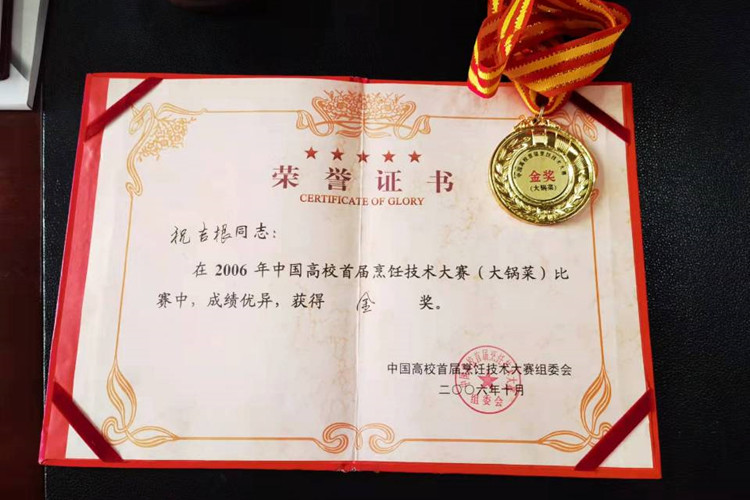 荣获2006年中国高校首届烹饪技术大赛(大锅菜)金奖