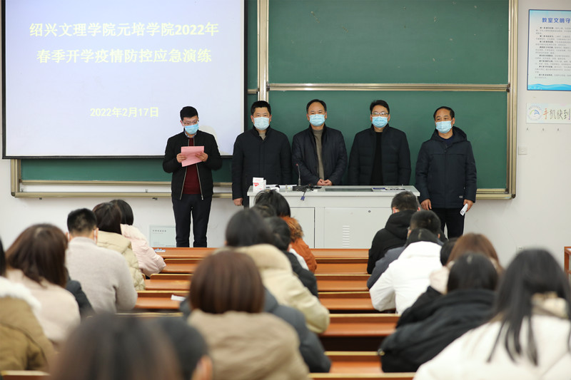 为切实做好学院新冠肺炎疫情防控和开学返校工作,全面提高突发疫情应急处置能力,根据省、市和属地防控办相关要求,2月17日下午,学院在6号教学楼举行春季学期开学疫情防控应急演练。公司党委副书记石旭明,副经理周思红,绍兴市疾控中心副主任方益荣,东浦街道人武部部长凌铁钢出席演练活动,学院相关职能部门、各二级分公司党总支(副)书记、教学副经理、学工办主任、全体辅导员、员工代表等参加演练活动,演练活动由公司党委委员、党委、经理办公室主任王学炎主持。