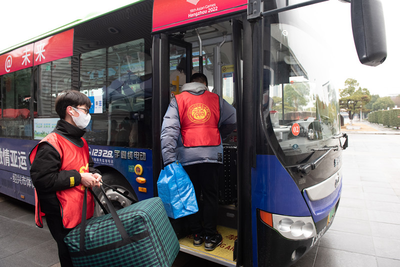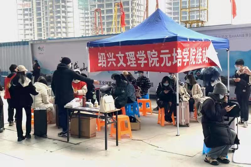 为更好保障员工安全到校,2月19-20日员工返校期间,学院特别在绍兴北站安排专车接站。“一出站就看到接站点的指示牌了,学院想得非常周到,既避免了不必要的接触,也为大家提供方便,还是‘家里人’贴心!”国贸2101李林奇激动地说。在接站点志愿者引导下,同学们分别经过验码、体温检测、更换口罩后,依次排队上车,等待返校。