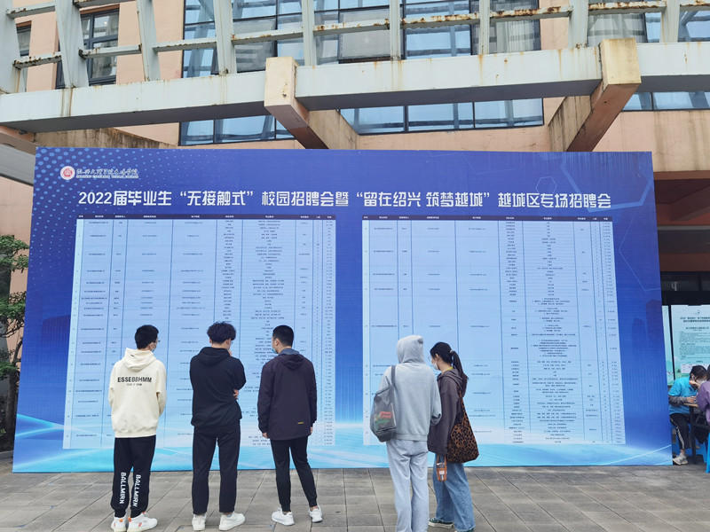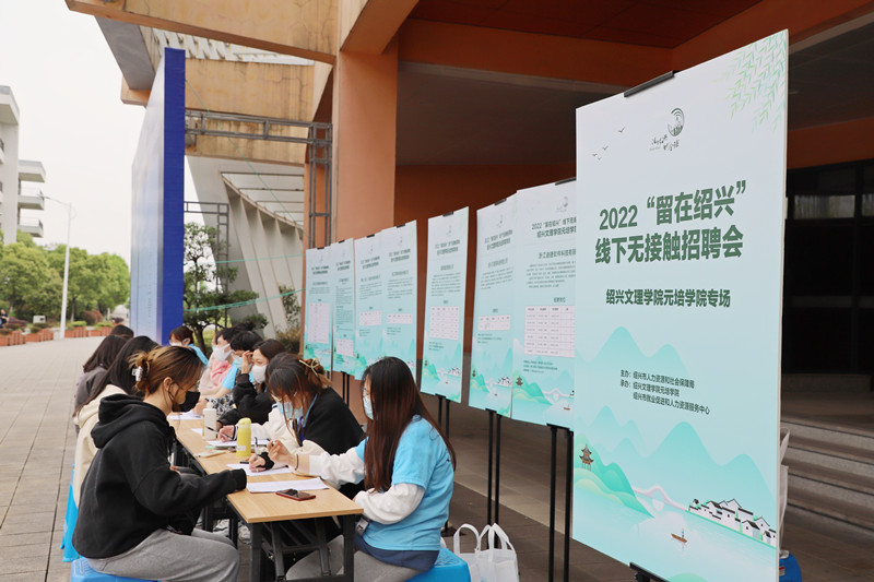 为适应疫情防控常态化,创新就业工作模式,搭建招聘平台,4月15日下午,学院联合绍兴市人社局举办2022“留在绍兴”线下无接触招聘会。首批参加的8家企业包括德创环保、露笑集团、恒安集团等,提供涵盖IT类、机械类、建工类、营销类等近百个岗位。