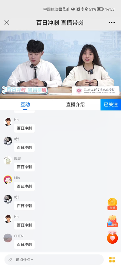 本次直播带岗活动学院邀请到赤霄科技、朗通医疗、秒优科技、玩到云端、乐玛王国等杭州五家企业,企业HR现场连线为直播间毕业生们进行企业介绍和岗位宣讲。招聘岗位以理工类为主,涵盖信息技术、机械电子、经贸营销、服装设计等专业,提供岗位数量80余个,吸引了近200余名“粉丝”进入直播间观看。