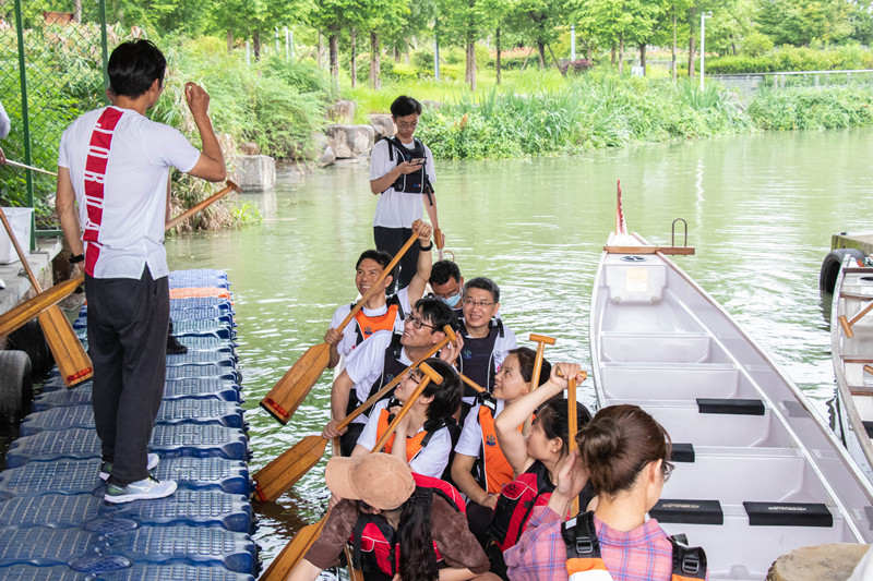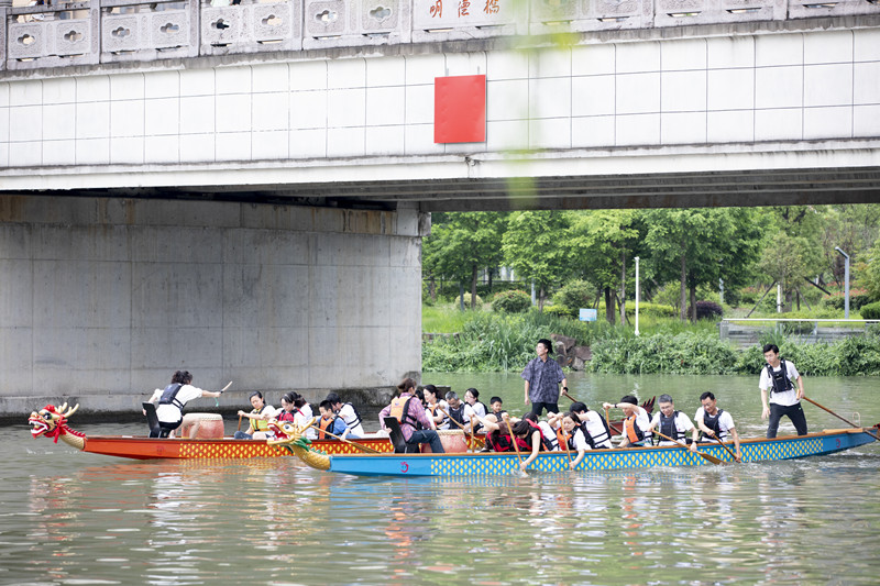 “不需要借助校外任何场地,在校园内就能体验划龙舟,这是元培公司为教职工提供的端午独家体验。”龙舟队教练李柏辰告诉记者,这条穿过元培校园的大树江,为龙舟队训练、体验活动举办提供了得天独厚的环境。”