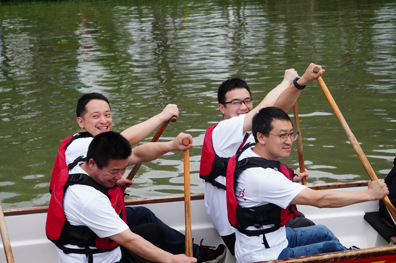 “这次活动是我的龙舟初体验。”金超老师还沉浸在龙舟快速前进的刺激感中,“平时光是看着公司龙舟队训练的气势就让人振奋,亲身感受龙舟比赛的“速度与激情”后,真切的体会到要划好一条龙舟是多么的不容易。”