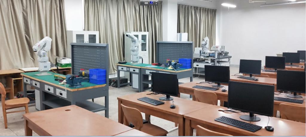 目前机械类实验室共有20余个,能够满足机械类各专业的基本教学、实践及实训。主要有PLC技术及应用实验室、工控实验室、机电一体化综合实验室、先进制造实验室、模具实验室、机电产品测量实验室、模拟电子技术实验室、数字电路实验室、智能仪器实验室、自动控制实验室、电机拖动及电工电子实验室、创客实验室等,2018年投资80余万新建了工业机器人实验室,为适应制造业的智能控制,2020年建立了DSP电机控制实验室,投资将近100万建设移动导航机器人院级重点实验室,为员工提供高端科研平台;并投资将近500万新建了工业机器人实训中心,该中心包括:工业机器人实训室、工业机器人运动控制实训室、工业机器人拆装维护工作站、工业机器人搬运码垛工作站及工业机器人焊接工作站等。