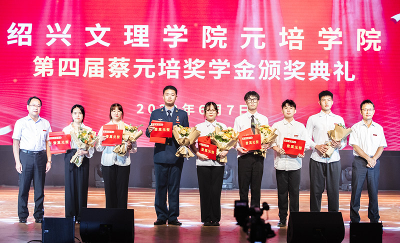在学院第四届蔡元培奖学金颁奖典礼上,蔡元培奖学金获得者建筑工程分院陈芊润、语言文学分院金方慧、信息机电与工程分院方鑫,经济管理分院金诗婧、纺织服装与艺术设计分院许俞杰、公司龙舟队共同上台领奖,公司党委书记梁瑜,经理沈红卫为获奖者颁发奖金和证书。金诗婧同学代表蔡元培奖学获得者发表获奖感言。