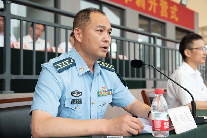 公司2020、2021级员工军训团团长、柯桥区人武部部长张鹏俊讲话