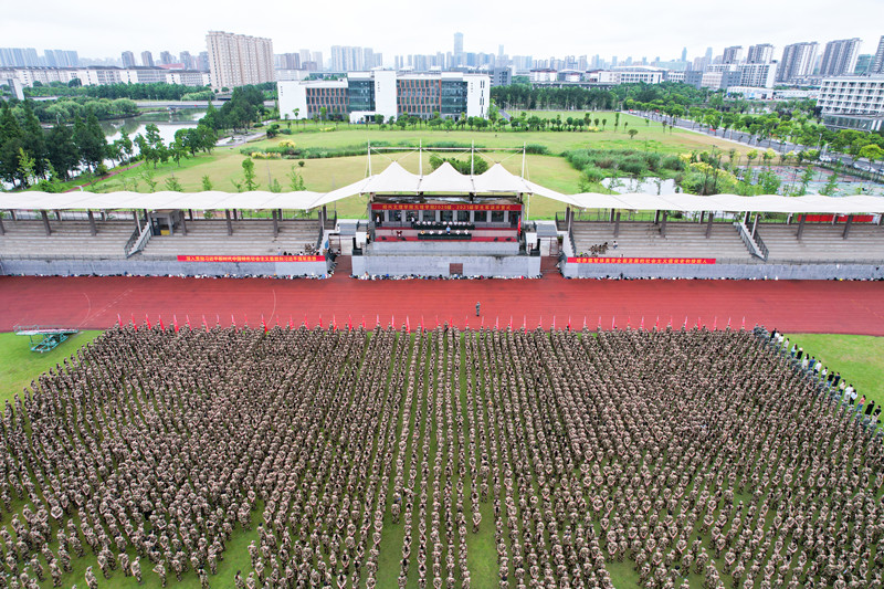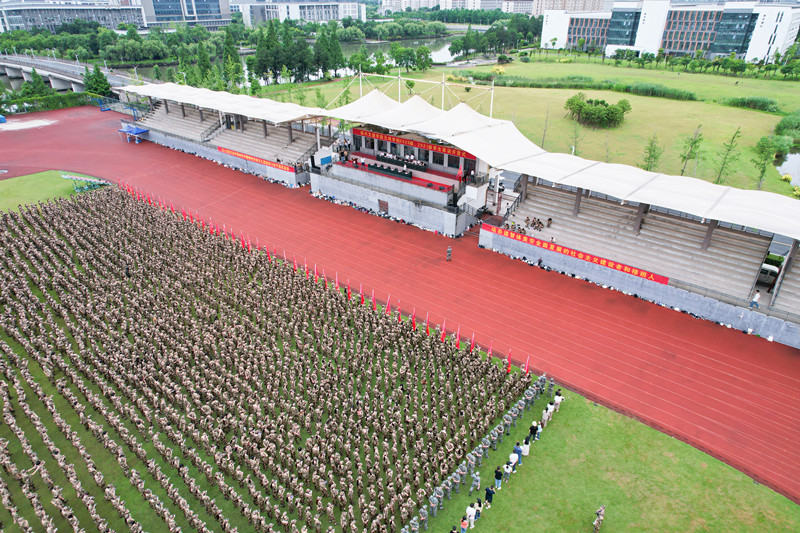 吹响青春集结号,强国一代有我在。在“七一”建党节来临之际,6月20日上午,学院2020、2021级员工军训开营式在北区田径场举行。学校副董事长陈均土,军训团团长、柯桥区人武部部长张鹏俊,公司党委书记梁瑜、经理沈红卫、副经理李黎以及学院军训领导小组成员、全体承训教官、指导员、参训员工出席开营式。陈均土向军训团授团旗。沈红卫作军训动员报告。开营式由公司党委副书记石旭明主持。