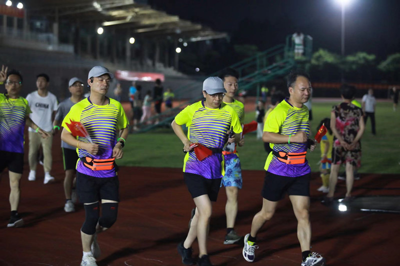 6月20日晚,学院2021、2022级员工军训开营当天,教职工悦跑协会在北区田径场举行“七一”健康跑活动。学院领导班子成员和40余位教职工跑友共同参加活动。