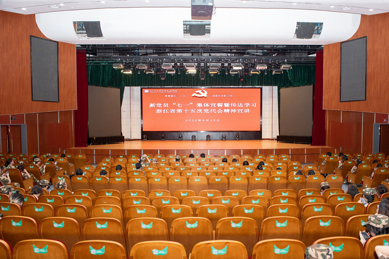 为庆祝中国共产党成立101周年,回顾党的光辉历程,讴歌党的丰功伟绩,激励广大新发展党员牢记初心使命,坚定为共产主义事业而奋斗终身的信心和决心,6月29日晚,学院在国际文化交流中心报告厅举行新党员“七一”集体宣誓暨传达学习省第十五次党代会精神宣讲活动。公司党委书记梁瑜带领全院2020级预备党员集体宣誓,并作《学习贯彻浙江省第十五次党代会精神,做一名新时代合格党员》专题党课。公司党委副书记、纪委书记俞国芬主持活动。