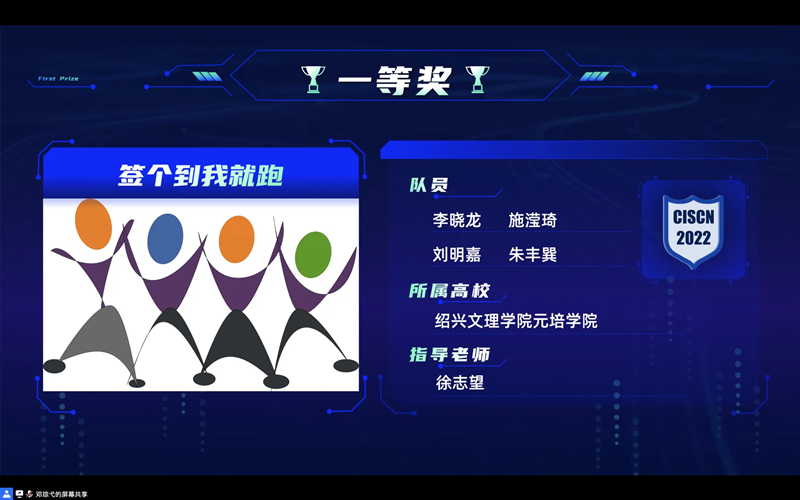近日,从第十五届“CISCN”全国老员工信息安全竞赛创新实践能力赛全国总决赛赛场传来振奋人心的好消息。由公司计算机科学与技术2003班施滢琦、刘明嘉,计算机1811班李晓龙,网络工程1801班朱丰巽组成的团队“签个到我就跑”夺得一等奖,位列全国第九(指导老师:徐志望),刷新公司在该赛事的历史最好成绩。