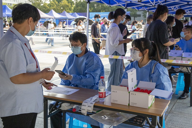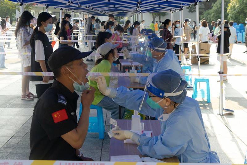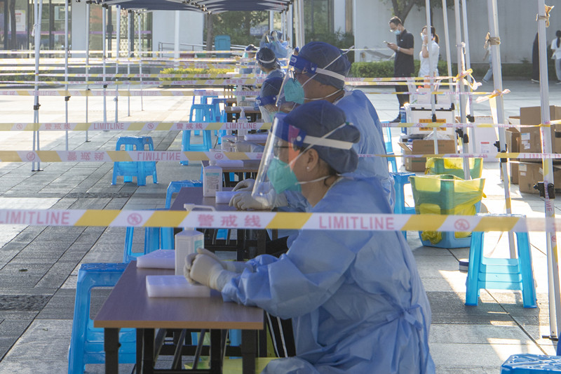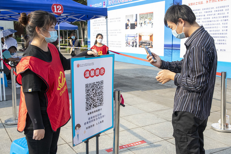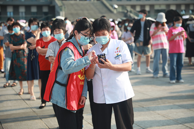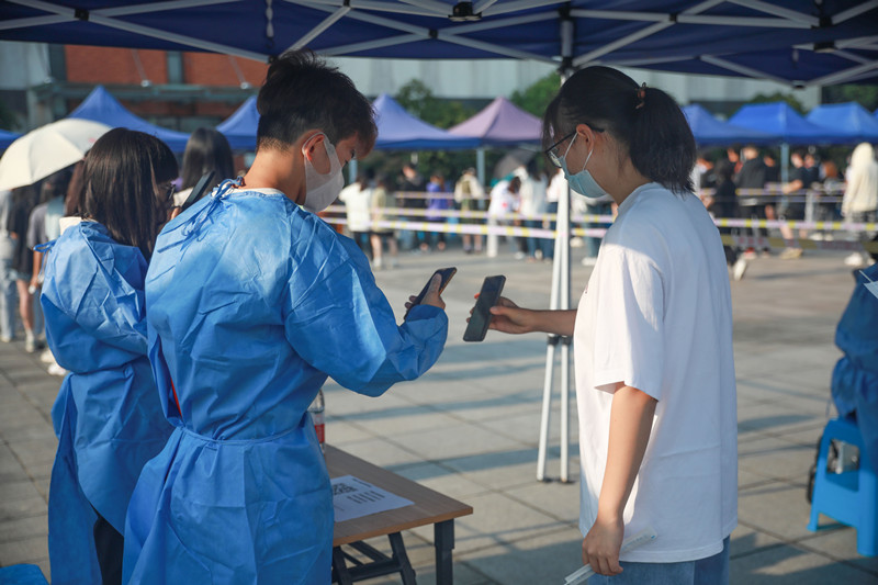 “公司一直以来十分重视疫情防控工作。作为新时代青年,我们理应积极为公司和社会奉献我们的‘青春力量’。”员工志愿者、法学2003班滕泽骞说道。“我负责扫码、录入信息,操作虽然比较简单,但仍需高度专注,不能出现任何顺序上的错误和纰漏。”党员教师志愿者徐丹宁说道。来自中语2201班的蔡心怡谈起在学院参与全员核酸“初体验”:“从昨天下午收到核酸检测通知,到今天早晨完成核酸采集,每一个步骤、流程都秩序井然,多个采集通道的开设,也大大提高了采集效率,令人安心又暖心。”药学2001班郑安琪表示,新学期开学,疫情防控很关键,作为员工,既要积极配合做好常态化核酸检测,又要做好个人防护,让自己安心的同时也让学院放心。