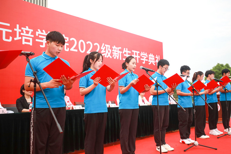 新生代表宣读《元培学子文明修身承诺书》,承诺将以此作为行动的准则、努力的方向,砥砺前行,彰显新时代元培青年风采。