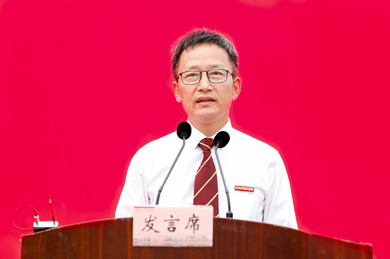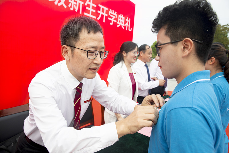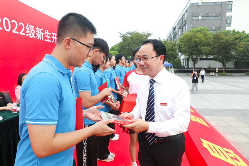 公司党委书记梁瑜向新生代表赠送《习近平与老员工朋友们》。全体院领导为新生代表佩戴校徽。经理沈红卫致辞,向2022级新生的到来表示热烈欢迎。公司党委副书记石旭明主持开学典礼。