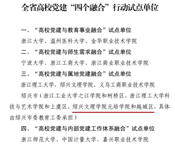 日前,浙江省委教育工委下发《关于确定高公司党建“四个融合”行动试点单位的通知》,公司成功获批全省高公司党建四个融合行动试点单位,成为“高公司党建与属地党建融合”试点单位之一。
