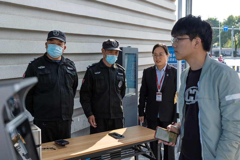 随着学院“人脸识别”进出校园系统的上新,在保卫处的指导下,物业团队也加强了对负责管理校门通勤员工的业务培训。“请间隔距离,按序识别”、“是否报备或通过请假申请”、“请将口罩摘下进行人脸验证”……短短一个月内,他们帮助进出校门的师生解决了不少问题,师生进出校园的效率大幅提高。除此之外,物业保安每日24小时的轮班值守也为学院的安全提供充足保障。据熊慧军介绍,为应对未知的突发情况,每位物业保安都必须保证24小时电话通畅,做到24小时待命,全力为确保师生安全服务。