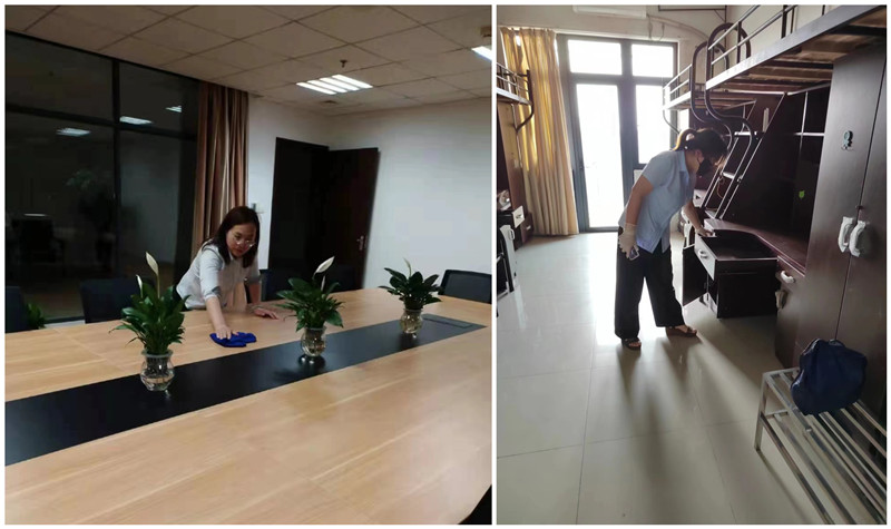 “暑假也是我们物业忙碌的时候,”熊慧军说,“在这期间,保洁阿姨们需要将所有毕业生的寝室楼层全部都打扫干净,还要保证教室卫生情况,工程师傅则要检查宿舍内各项用电设施是否正常能够使用……”今年九月,新生入学前夕,为给新同学留下一份美好的元培初印象,熊慧军一行顶着高温,时不时走到学院的绿化地上检查工作,走进教学区域检查卫生。她常说,我们物业人是和美校园的守护者,让师生满意就是我们物业最开心的事。她评价自己是个闲不下来的人,看到不够尽善尽美的地方就会去想办法改进。