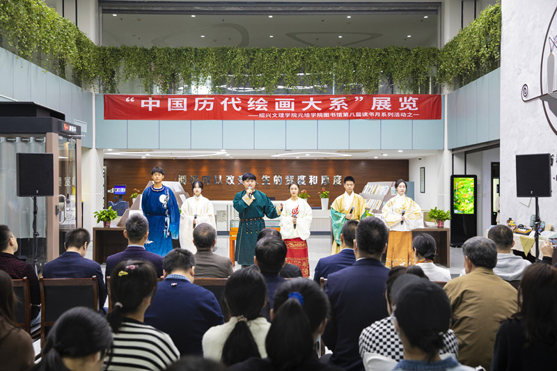 11月23日下午,公司第八届读书月系列活动——“中国历代绘画大系”(宋画)展览活动开幕式在图书馆二楼大厅举行。浙江大学图书馆资源发展总监张军,越城区委宣传部部务会议成员、理论科科长叶登,太阳成集团tyc33455ccwww图书馆馆长李秀明,公司党委书记梁瑜,经理沈红卫,党委副书记、纪委书记俞国芬,员工代表绍兴兰亭书法博物馆接待部、戴葆庭钱币文化博物馆金石泉拓中心常务副主任金余池以及公司相关职能部门负责人、师生代表出席开幕式。开幕式由副经理沈玮主持。