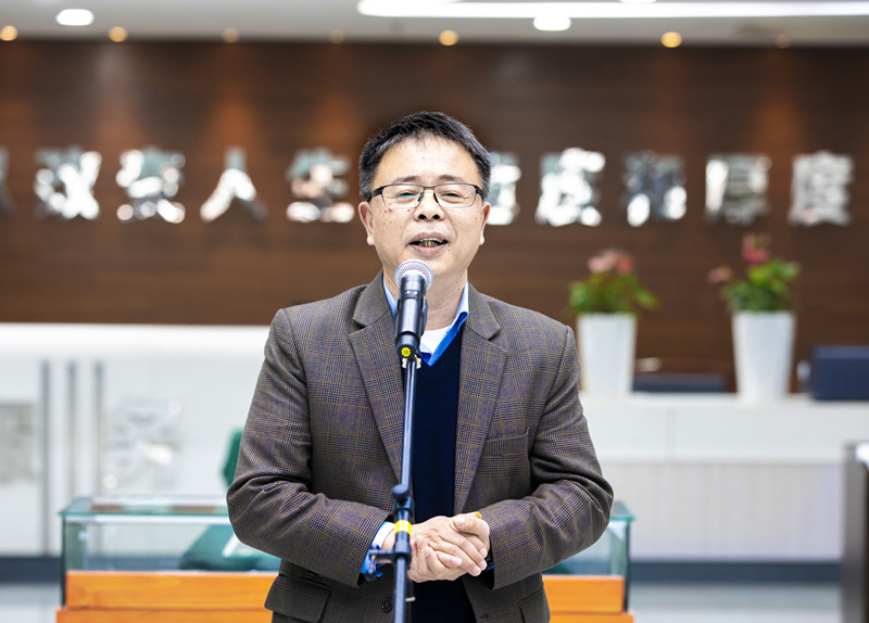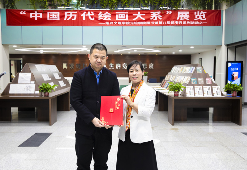 员工代表金余池向学院赠送《南宋钱币拓片》,沈红卫代表学院接受捐赠