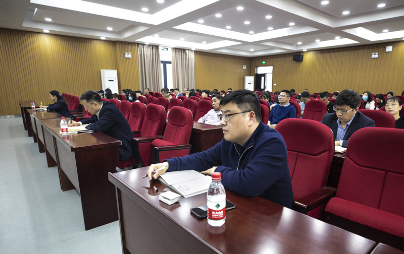 3月15日下午,绍兴市国土空间规划研究公司党委书记、经理金斌受邀来院作“绍兴网络大城市解读”专题报告。公司党委领导、越城区东浦街道党员代表、机关党总支、建筑工程分院、公共基础教育分院等三个党总支理论学习中心组成员、机关全体党员和学院首批梁柏台青年人才学院学员代表等参加讲座。