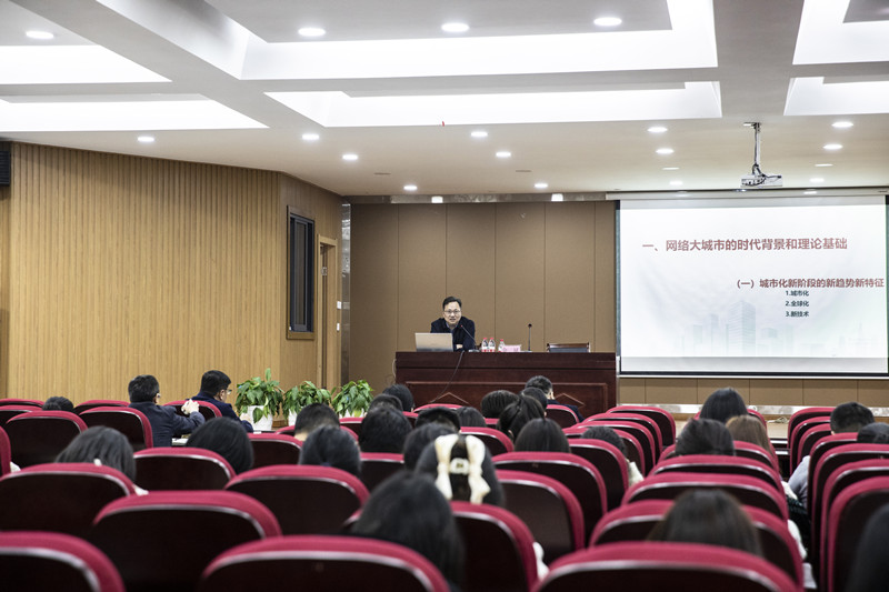 会上,金斌经理从网络大城市的时代背景入手,紧密结合实践案例,从城市化新阶段的新趋势新特征、新时代新目标的新挑战新路径、绍兴网络大城市空间结构、绍兴近期重点打造的特色精品片区等方面条分缕析式地讲解。报告脉络清晰、内容丰富、重点突出,既有理论高度,又有实践厚度,紧扣社会迭代推动城市演进主线;报告呈现的具体内容紧扣绍兴实际,以展望未来的视角分析呈现趋势,具有很强的现实性、针对性和前瞻性,不时引发师生共鸣,大家纷纷表示深受启发和教育。