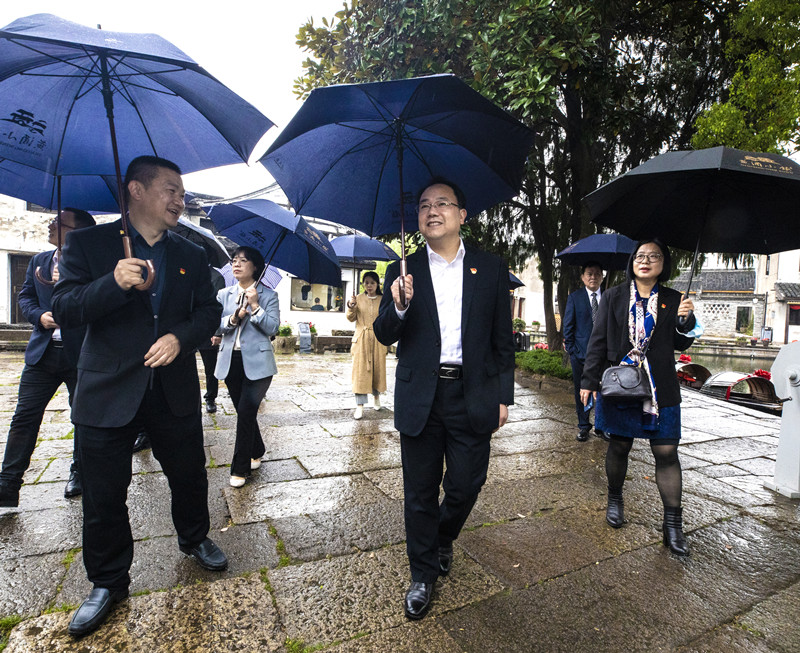 与会有关领导、高层次人才代表等参观调研黄酒小镇