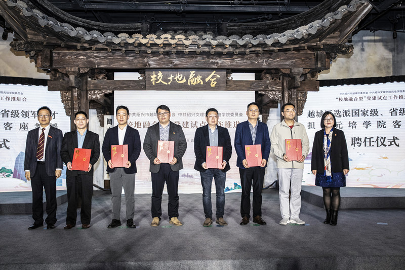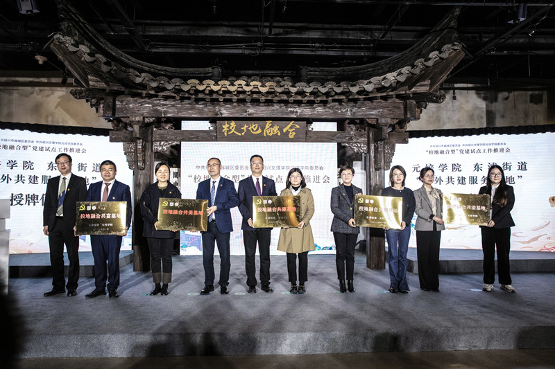 会议先后举行了“融合型党建”试点专项工作组与学院各二级分院结对共建签约仪式,“越城区 元培学院校地融合师生服务中心”揭牌仪式,“元培学院 东浦街道校地融合共建服务中心”揭牌仪式暨“五基地”授牌仪式,越城区选派国家级、省级领军人才担任元培学院客座教授聘任仪式和“校地融合驻点指导员”聘任仪式。