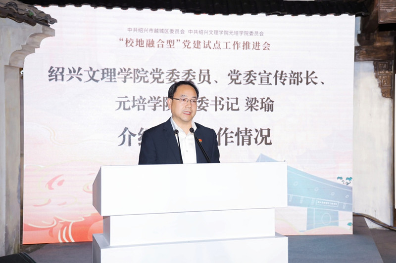 绍兴文理公司党委委员、宣传部长、元培公司党委书记梁瑜介绍“校地融合型”党建试点工作情况