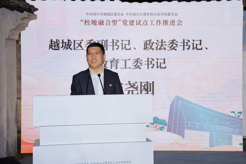 应尧刚在致辞中充分肯定了双方为校地融合共建所付出的努力和取得的成绩。他指出,新形势下“校地融合型”党建工作要在党建融合上协同发力、在产才融合上精准发力、在安全融合持续用力、在项目合作凝聚合力,为共同推进“首位立区、幸福越城”建设、奋力谱写中国式现代化越城新篇章提供坚实支撑。就进一步深化校地融合工作,他强调,要加强党建融合,推动“校地融合型”党建试点工作走深走实;加强产才融合,创新“校地融合型”党建试点工作实践模式;加强安全融合,拓展“校地融合型”党建试点工作领域范围;加强项目合作,打造“校地融合型”党建试点工作特色亮点。