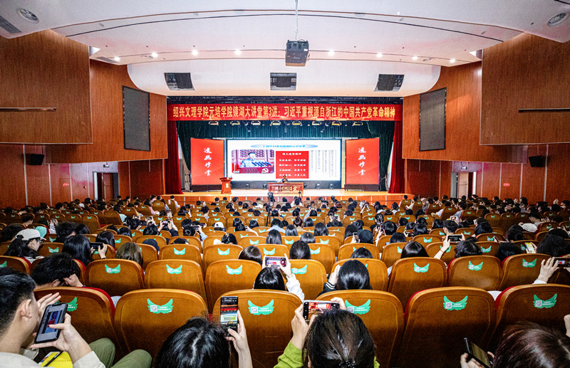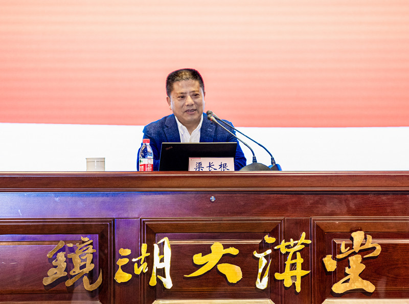 4月20日下午,“镜湖大讲堂”第3讲在国际文化交流中心报告厅举行。浙江理工大学红色文化研究院经理、马院原经理、思政课国家教指委委员、中国红色文化研究会常务理事渠长根应邀作《习近平重视源自浙江的中国共产党革命精神》报告,为学院师生带来了一堂别开生面的主题党课。绍兴市委党史研究室主任朱全红、副主任郑红光、朱伟明,公司党委理论学习中心组成员、绍兴市委党史研究室党员干部、学院优秀党员师生代表等300余人现场聆听了报告。报告会由公司党委副书记、纪委书记俞国芬主持。