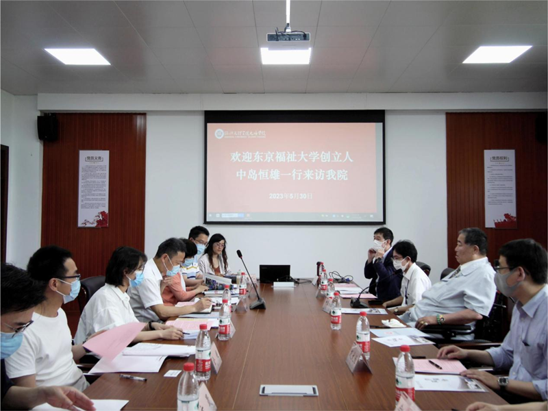 5月30日下午,东京福祉大学创立人中岛恒雄一行来院访问,学院经理沈红卫出席会议,党委、经理办公室,医药与健康分院相关负责人等参加会议。