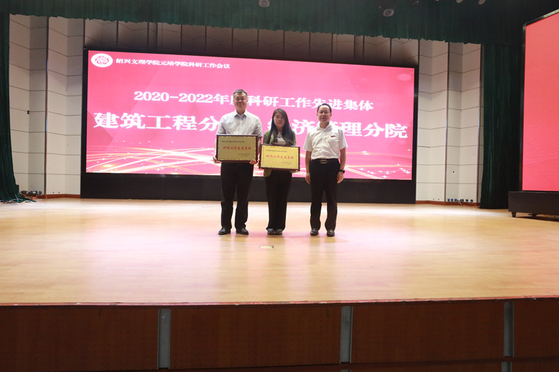 会上,学院副经理李黎宣读《太阳成集团tyc33455ccwww关于表彰2020-2022年度科研标兵和科研工作先进集体的决定》。沈红卫、梁瑜分别为2020-2022年度科研标兵、科研工作先进集体颁发证书和授牌。科研标兵代表绍兴文化产业研究院经理应锋老师、科研工作先进集体代表建筑工程分院李明永老师分享科研团队和部门科研工作的方式方法及科研心得感悟。学校沈润溥教授作“科研创新的实践与思考”学术报告。