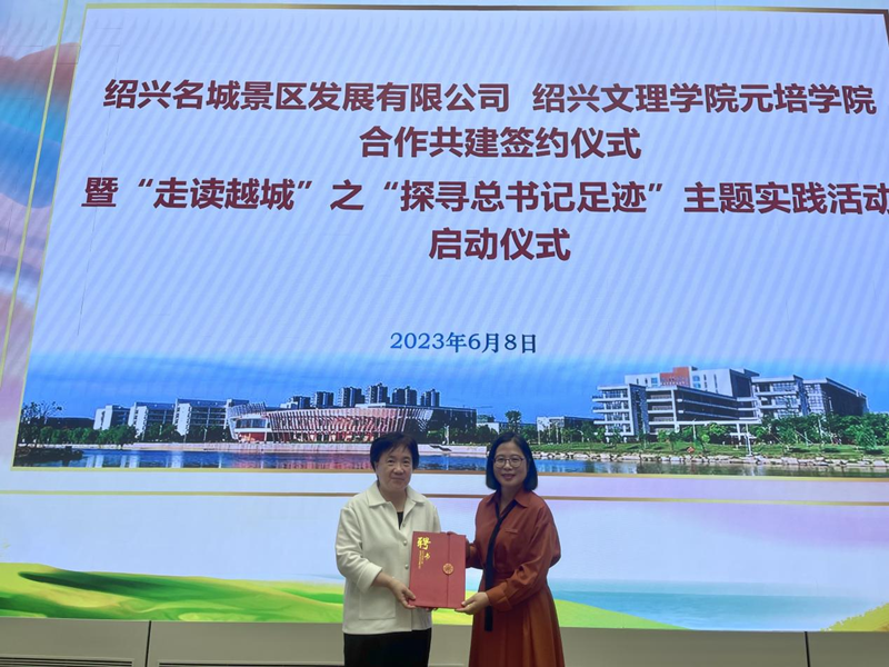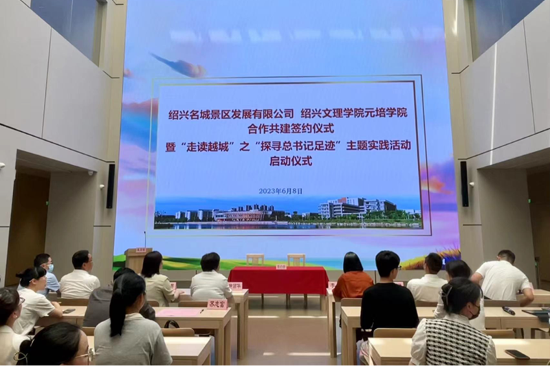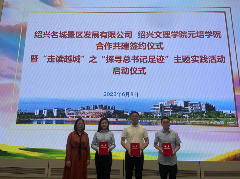 6月8日下午,马克思主义分院与绍兴名城景区发展有限公司在绍兴孑民图书馆举行合作共建签约活动暨“走读越城”之“探寻总书记足迹”主题实践活动启动仪式。绍兴市文旅集团副书记、副总经理仲丽华,学院副经理李黎,绍兴名城景区发展有限公司、学院人事处、马克思主义分院负责人,以及师生代表参加本次活动。