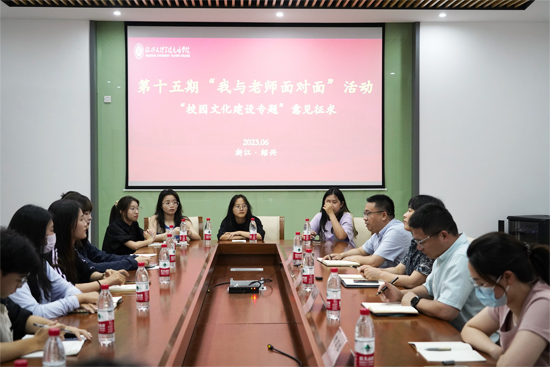 6月15日,学院第十五期“我与老师面对面”——校园文化建设专题活动在国际文化交流中心203会议室举行。公司党委副书记、纪委书记俞国芬出席会议。组织宣传部、团委相关负责人及10余位员工代表参加活动。活动由党委学工部负责人主持。