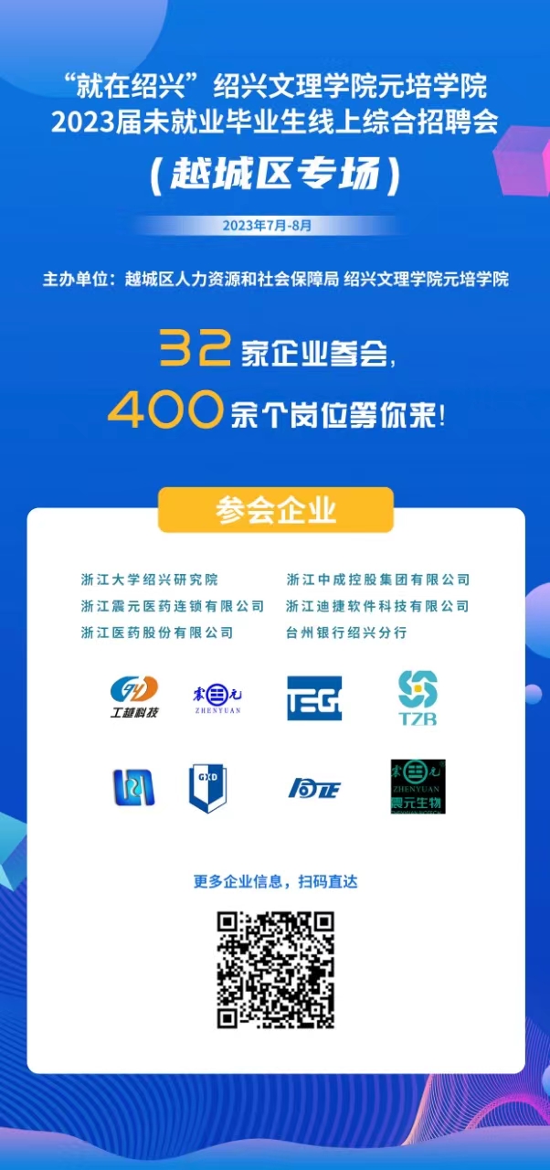 为精准对接需求,越城区人力资源服务中心针对公司未就业毕业生就业意向和专业分布情况,组织化招募涵盖电子信息技术、医药健康、机械类、文化产业等行业的30余家在绍企业,为毕业生提供400多个就业岗位。招聘活动期间,学院将充分发挥就业服务数字化平台优势,向未就业毕业生持续精准推送岗位信息。各二级分院将及时跟进2023届离校未就业毕业生求职进展,做好岗位推介,引导毕业生以平实之心积极求职择业、尽快就业。