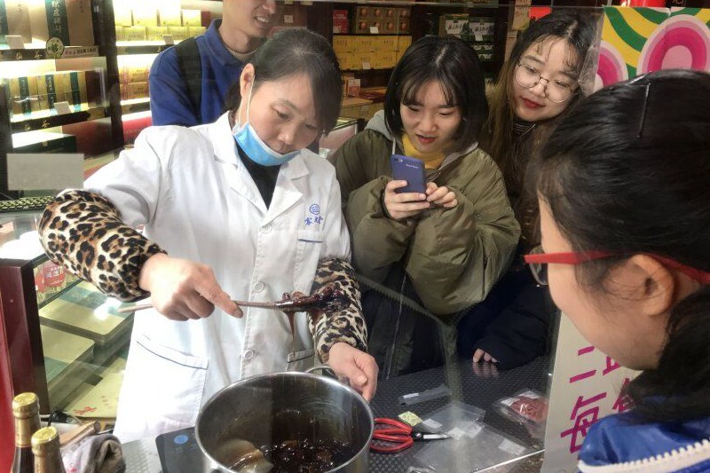 分院员工党员在震元堂开展学习制作阿胶糕的活动