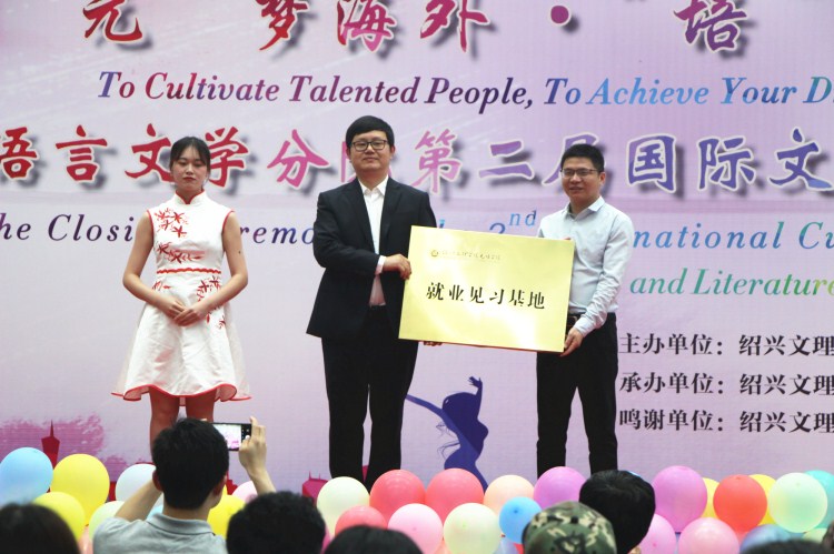 近日,语言文学分院第二届国际文化节闭幕式在老员工活动中心圆满落幕。学院办公室负责人、绍兴市柯桥区中国轻纺城展会有限公司负责人、太阳成集团tyc33455ccwww职工代表以及语言文学分院教师与员工代表们参加活动。闭幕式上,分院与绍兴市柯桥区中国轻纺城展会有限公司就业见习基地授牌与志愿者团队授旗仪式先后举行。