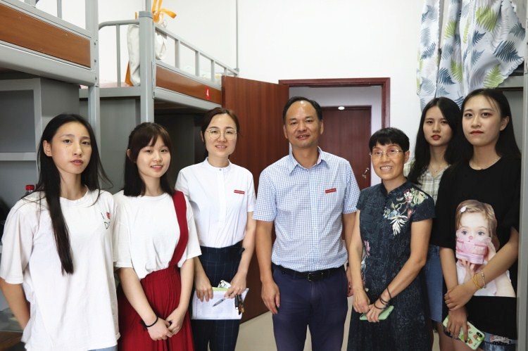 秋高气爽晓云开,背负行囊揣志怀。8月29日,纺织服装与艺术设计分院2019级新生陆续来校报到,开启奋斗逐梦的求学之路。公司党委副书记石旭明在分院领导等陪同下检查指导分院迎新工作,与师生及家长进行亲切交流,并走访了分院新生寝室,详细询问了新生在住宿、饮食、环境适应等方面的问题,鼓励同学们尽早适应学校环境,珍惜时光,努力学习,用青春书写精彩人生。