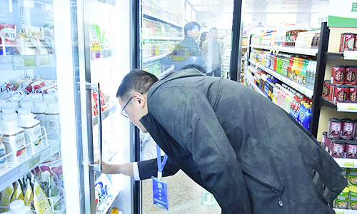 专家组一行随后赴南区超市现场查看了店容店貌、购物环境、设施设备、布局陈列、服务规范等情况,并现场进行了师生问卷调查和员工业务知识提问,查阅了商品质检报告、供应商索证等各类台账。