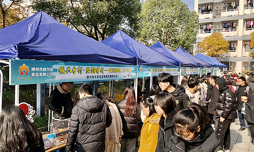 12月24日-25日,由学院资产经营公司和绍兴市老员工农创客发展联合会共同主办的“‘振兴乡村,农创有我’——优质农产品进校园活动”在群贤楼食堂广场和兴越楼食堂广场火热举办。本次活动共有绍兴农创客科技有限公司、诸暨市东山圩家庭农场、嵊州市越为首食品有限公司等八家单位参展。