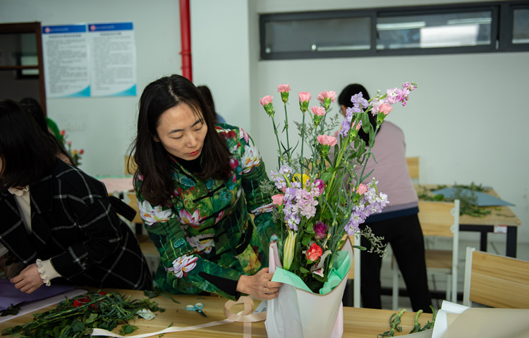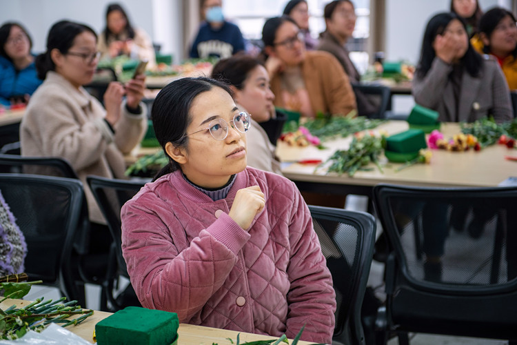 “这是我第一次学习插花,我感到非常有趣,不仅对插花艺术有了更深入的了解,心情也随之愉悦了许多。”在享受插花艺术的乐趣时光后,经济管理分院的田栩静向记者展示了以“花开富贵”为理念创作的花束,她对这次活动赞叹有加。像田栩静一样,其他老师们平日里也都喜欢打理花花草草,这次能有机会认真学习插花技巧,大家都觉得非常开心且有意义。“能为女教职工们送去温暖和祝福,让她们在辛勤工作之余能够感受插花艺术的魅力,愉悦身心,这次活动就举办得非常成功。”工会有关负责人表示。
