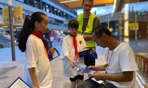 在天悦城广场,反诈志愿者们通过现场讲解、宣传资料发放等形式向商户、居民讲解反诈知识,现场走访商户近百家、发放宣传资料近2千份。