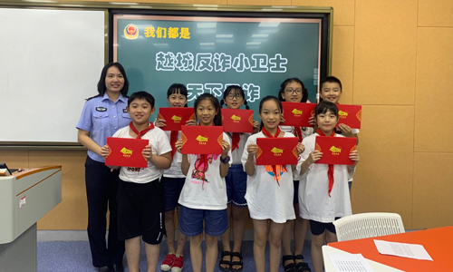 为提高小员工识诈反诈能力,保护小员工及家长的财产安全,切实发挥少先队员接班人作用。8月4日,在越城公安分局的指导下,学院老员工反诈志愿团携手北海小学镜湖校区407班梦马中队同学开展识诈、反诈宣讲活动。