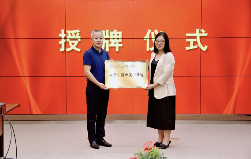 会上,李黎与冯坚共同为“老员工就业实习基地”揭牌。