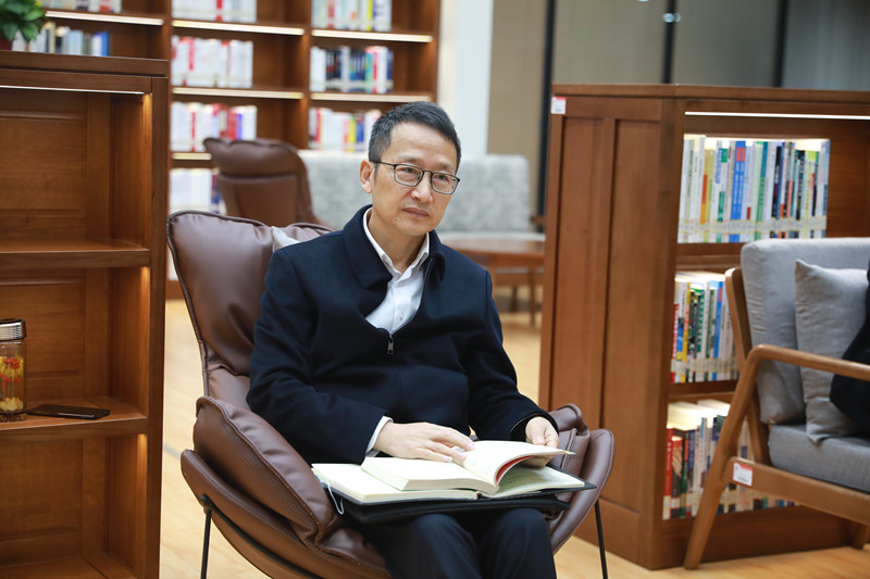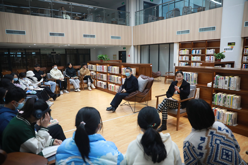 沈红卫在清幽书香中娓娓道来自己的读书经历,从读书使人知书达理、读书让人安静和自我调节、读书让人学会独立思考和思辨、读书是未来生存的能力等四个方面交流读书的意义。他语重心长地寄语在座员工,要充分认识读书的重要性,利用大学美好时光,调整自身节奏,好好读书,通过读书了解时代发展方向,有效建立自己的竞争力,为踏上社会做好准备。