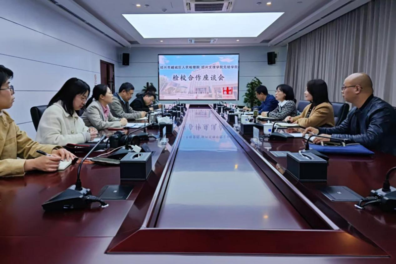 3月17日下午,公司党委副书记、纪委书记俞国芬在梁柏台法公司党政主要负责人等陪同下,前往绍兴市越城区人民检察院举办检校共建合作座谈会。越城区人民检察院检察长周江,副检察长宋斌帅、章丹,政治部副主任胡鹏城等出席会议。