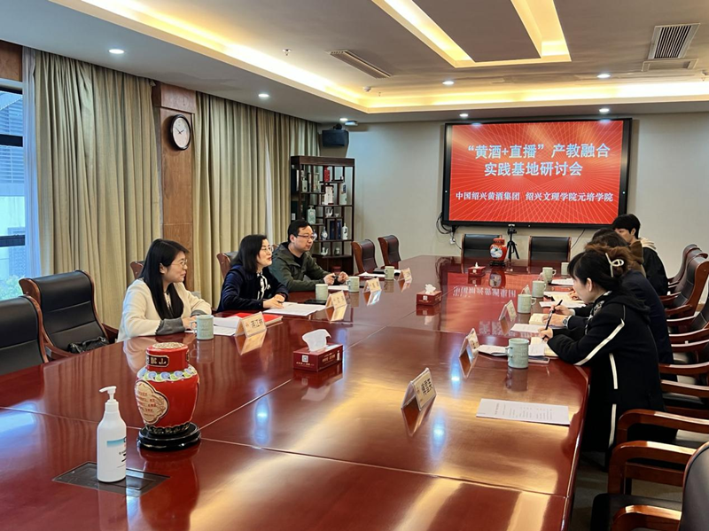 绍兴黄酒集团党委副书记杨文龙介绍了黄酒集团及下属品牌古越龙山基本情况,并提出共建实践基地的“四共”方针,即共办、共育、共享和共赢。他指出,校企双方要共办实践基地,共同培养营销主播、抖音直播基地建设,实现资源共享、活动共享、黄酒节共建、培育成果共享。杨文龙还对分院“黄酒+直播”产教融合实践基地项目(浙江省“十四五”省级老员工校外实践教育基地立项项目)作了深入交流。