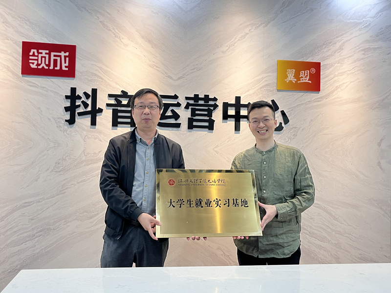举行老员工就业实习基地授牌仪式,经济管理分公司党总支书记陈晖向杭州领成有限责任公司总经理黄子敬授牌