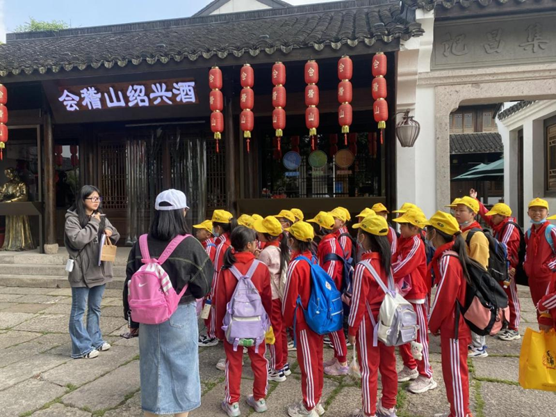 近日,作为首批入选“绍兴市非遗研学基地”的黄酒小镇与越城区灵芝街道中心小学等5所学校建立联动合作关系,开展研学游系列活动。4月26日-28日期间,语言文学分院在前期与黄酒小镇管委会党建共建合作的基础上,组建了一支校地服务中心讲师团,选派10名优秀员工党员担任黄酒小镇研学游讲师,深度参与小镇研学活动,接待数百位小员工游客,提供优质的研学服务。