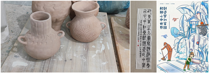 在专业劳动中发现美,培育美,营造美,完善美,是分院美育协同育人的创新所在。分院青年学子在服饰作业展示中主动劳动探索美的真谛;在陶艺课中辛勤劳动发掘美的内涵;在化妆课DIY劳动中追寻美的足迹;在插花课中细心劳动体悟美的底蕴;在书法创作劳动中汲取美的养分;在海报设计创新劳动中提高欣赏美的能力;结合专业实际通过双手展现最美丽的青春美育风景线。