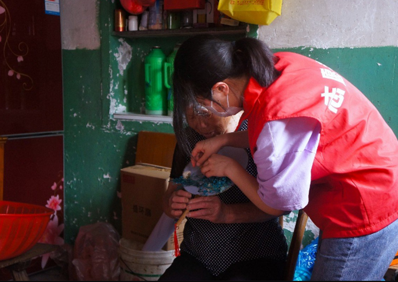 分院组织护理学和药学专业员工组成安宁疗护志愿团队,走访慰问老人,陪老人聊天,帮助老人做家务,共同做团扇,以实际行动解决孤寡老人生活不便之处,提供关怀服务。后续还将常态化开展东浦村志愿服务,努力完成老人所需所盼。
